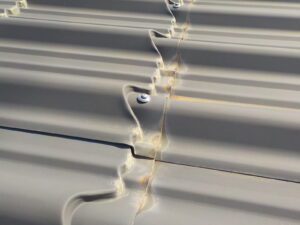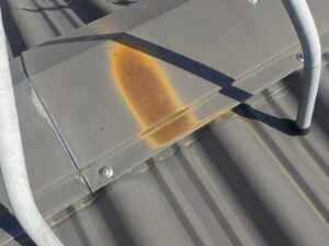 現地調査では、屋根全体に色褪せが見られ、一部には錆の発生も確認できました。