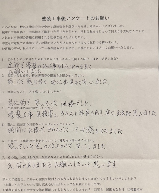 このたび、水戸市S様より屋根塗装工事後のアンケートをいただきました。
